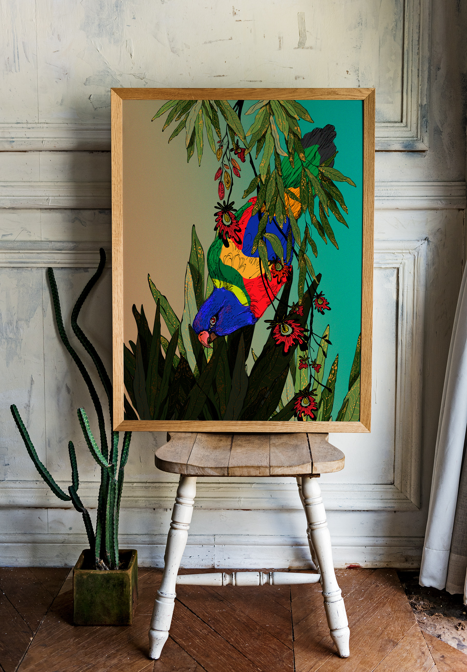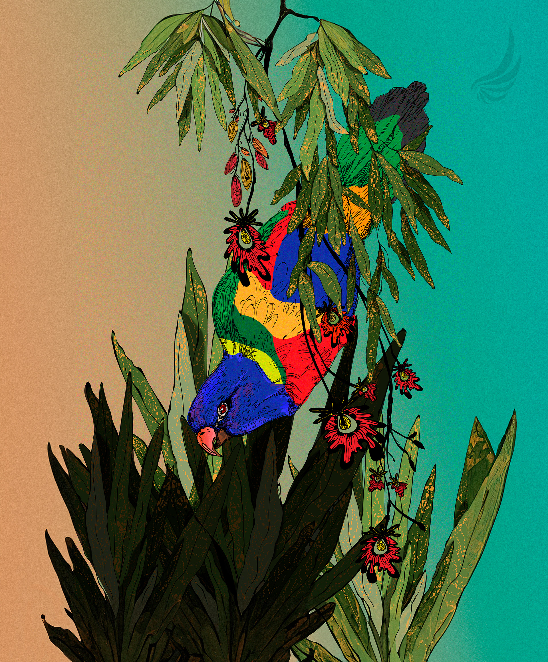 This is Loris Lane. She´s the inpiration of this illustration. She is a loris garrulus with a strong personality, super active and capable of imitating many sounds and words. She was my companion for over 13 years.
